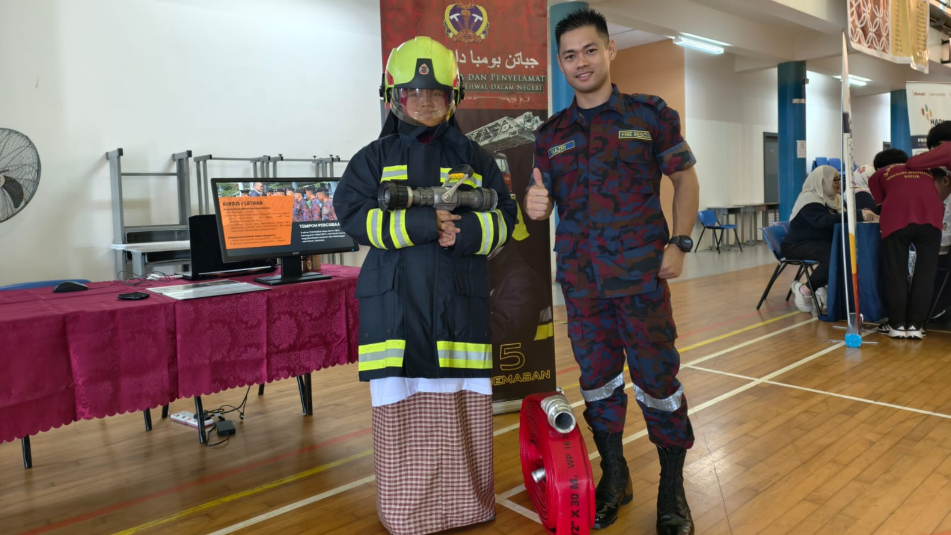 Jabatan Bomba dan Penyelamat turut menyertai pameran kerjaya tersebut dan telah menerima sambutan yang menggalakkan dengan kehadiran seramai 823 orang murid sekolah berkenaan. Program ini bertujuan memberi pendedahan awal mengenai hala tuju pendidikan dan kerjaya selepas BGCE O’Level.
